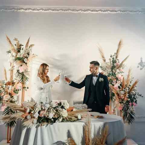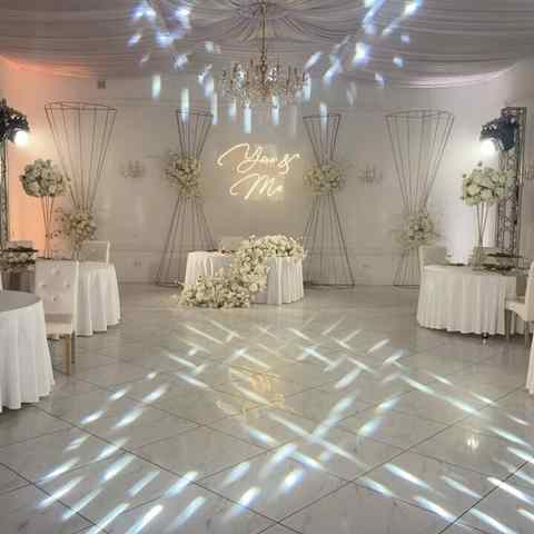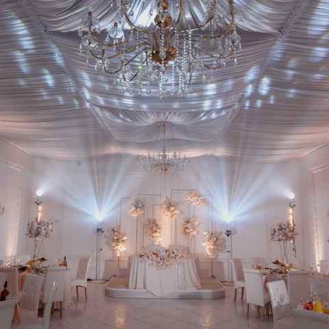 - Холл прекрасно подойдет под фуршет, здесь гости смогут угоститься аперитивом и закусками. Банкетный зал в белоснежных тонах, с высокими потолками и изящными люстрами вместимостью до 100 гостей оформлен декором с круглыми столами и президиумом и может стать подходящим местом именно для вашего торжества.