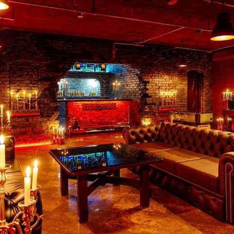 - На втором этаже коттеджа Gatsby Hall (Гэтсби Холл) находится lounge-зал в стиле лофт с баром и кожаными диванами.